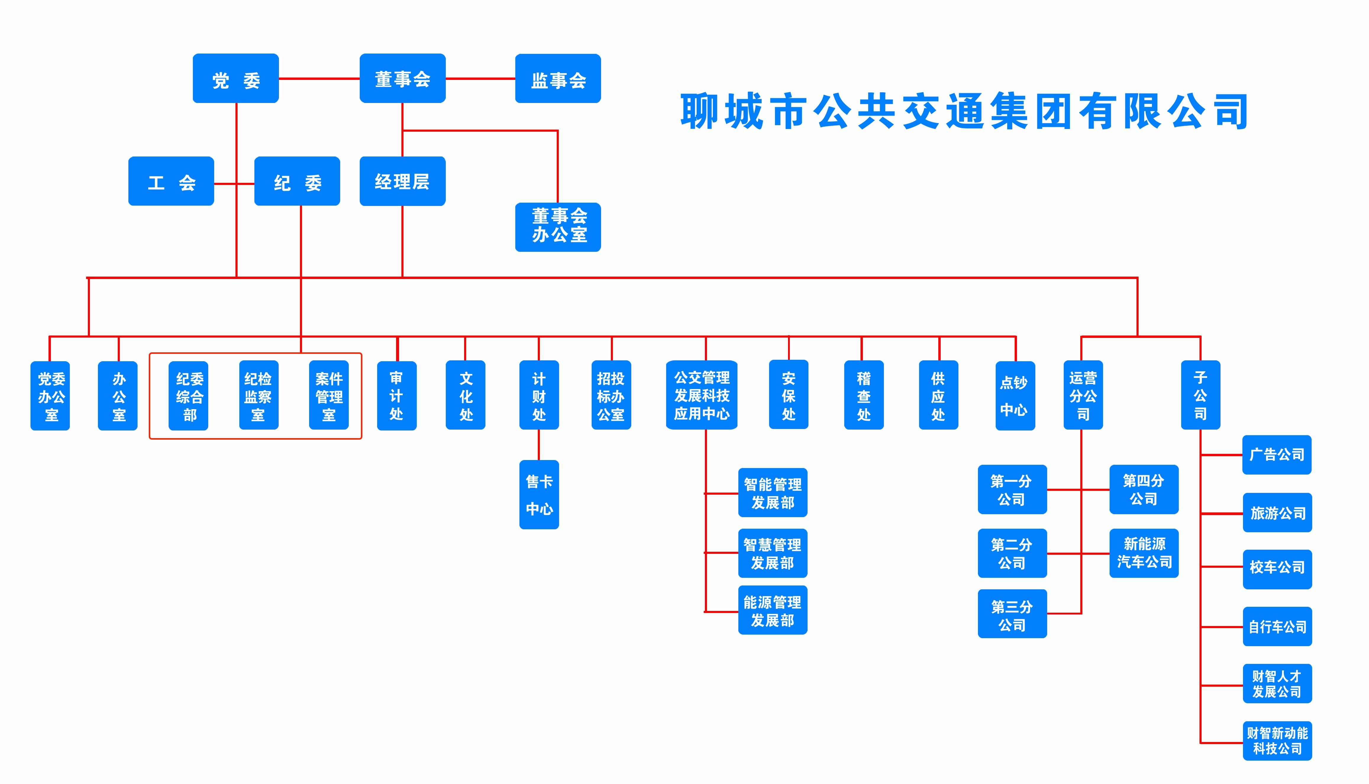 分为一公司、二公司、三公司、四公司、新能源汽车公司,主要负责公交线路、驾驶员以及公交车辆的具体管理工作。